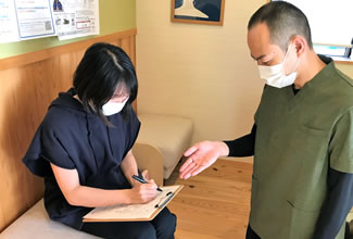 2年程前から腰の痛み、下肢のしびれがあり、夜も眠れず、意識がなくなるぐらいの痛みが2~3か月つづき、整形に受診、薬とリハビリをしましたが、変化なく、携帯で色々調べてお伺いしました。